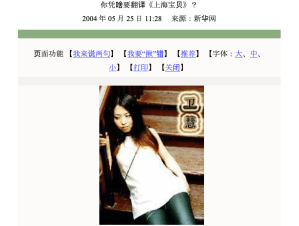 in the UK (if my recollection is correct), penned an essay that ingeniously linked Wei Hui, her novel and my translation of it with the scandalous abuse of Iraqi prisoners by their American captors — perhaps most infamously, by Lynndie England — in Abu Ghraib Prison during 2003-4.